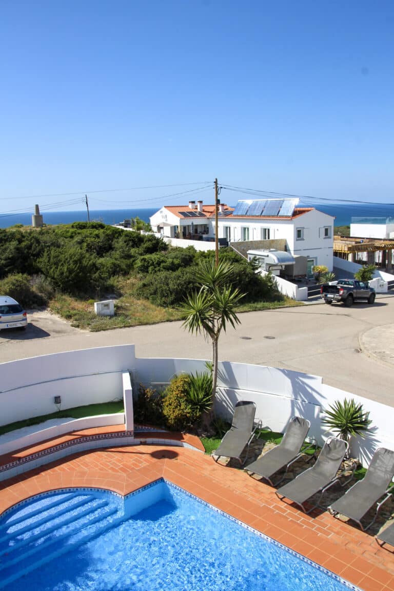 Book nowWe’ve found a surf paradise! Our surf camp in the Algarve is a cozy, comfortable, and relaxed place with a pool, ocean views, and a great atmosphere. The camp is located on top of a small hill overlooking the sea and the beautiful surroundings, close to Monte Clérigo and Amoreira – two of the area’s most loved surf beaches.