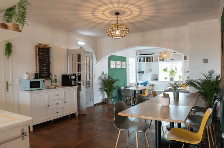 Here, you’ll have the perfect base for relaxation: several terraces, a green garden, a pool, a bar, and plenty of small spots where you can unwind, read a book, or hang out with fellow guests.