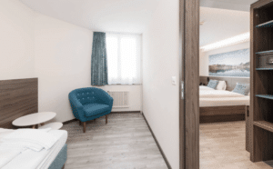 • Beroende på när ni anländer kan ni ta hissen direkt från hotellet ner till centrum och utforska Engelberg.