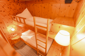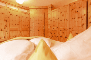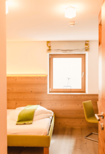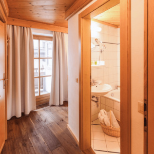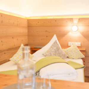 Ett enkelt och mysigt dubbelrum med klassisk trädesign och lugn atmosfär. Här får du allt du behöver efter en dag i bergen: sköna sängar, balkong/utsikt och en genuin alpkänsla.