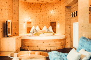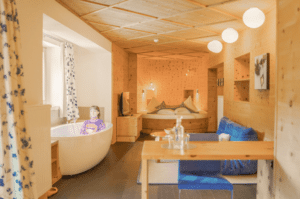 En romantisk och extra mysig svit med ett stort runt bubbelbad mitt i rummet och balkong. Mycket plats, loungeområde och en härlig wellnesskänsla. Perfekt för par som vill skämma bort sig själva – eller för dig som älskar lyxig avkoppling.