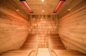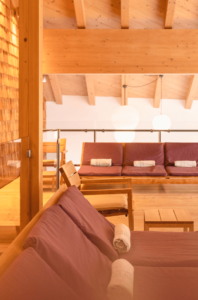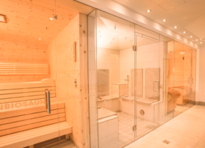 Wellnessområdet bjuder på inomhuspool med utsikt mot bergen, panoramabastu, jacuzzi, relaxrum och ett litet gym. Dessutom finns lounge, bar och solterrass – perfekt för en drink eller en lugn stund i solen.