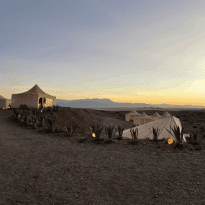Vi startar i Marrakech och rör oss mot Agafay-öknen. Efter en kort och härlig cykeldag väntar en eftermiddag och kväll i ett lyxigt beduinläger. Ett magiskt första möte med Marockos kultur.