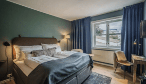 Vi bor på Dreges Hotell i Stranda – ett lokalt hotell med lång historia och en avslappnad, genuin atmosfär. Hotellet ligger centralt i byn, nära fjorden och med kort bilväg till både Stranda Skicenter och fjällen som omger platsen.