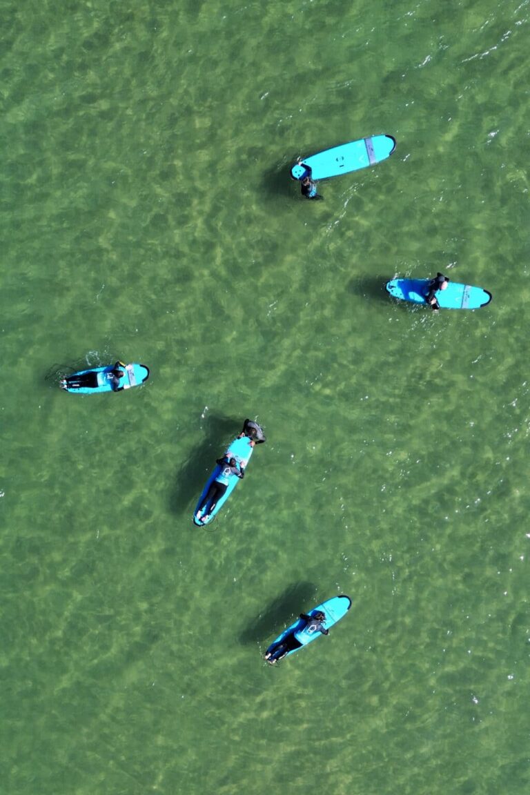 - Efter frukosten drar dagens surflektion igång – vanligtvis cirka 1,5 timme med fokus på teknik, säkerhet och gott om tid i vattnet.
