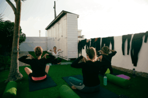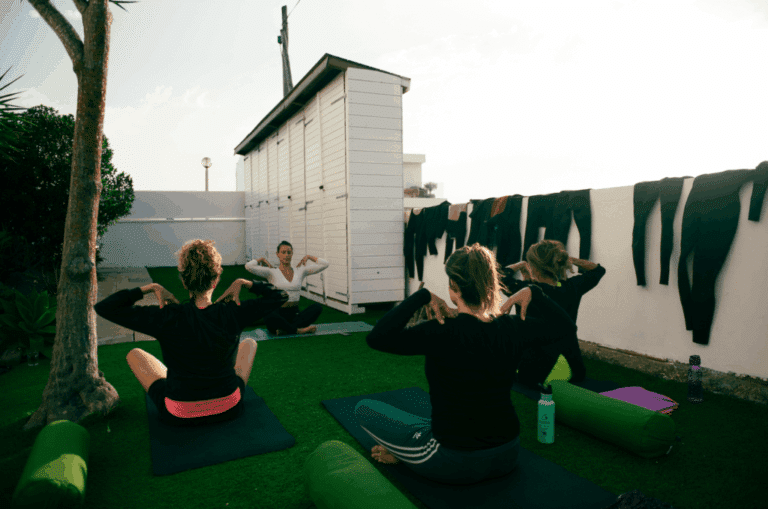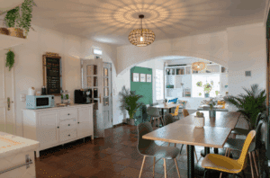 Här har du en bas som bjuder in till lugn och återhämtning: flera terrasser, en trädgård, pool, bar och små favoritplatser där du kan koppla av, läsa en bok eller umgås med andra gäster på campet.