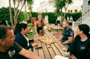 - Tre kvällar i veckan arrangeras gemensam middag på campet (möjlig att boka till tisdag, fredag och söndag) – ett av veckans mysigaste inslag. Övriga kvällar väljer du själv: upptäck närliggande restauranger eller njut av solnedgången från terrassen.