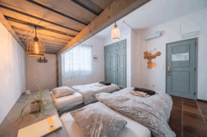 Här bor du i ett ljust och rymligt rum med eget badrum, dubbelsäng och våningssängar samt gott om plats för både packning och avkoppling.
